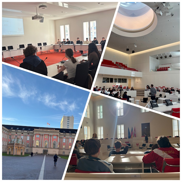 Die Schüler:innen der Jahrgangsstufe 9 besuchten am 5. November 2025 im Rahmen des PB-Unterrichts den Landtag Brandenburgs. Vor Ort wurde zunächst in einem Quiz-Format geschaut, welche Vorkenntnisse die Schüler:innen zum Thema Politik und Demokratie schon haben.