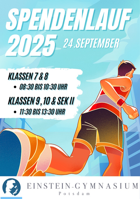Bei unserem freiwilligen Spendenlauf am Mittwoch, dem 24. September 2025, kann sich jede Schülerin und jeder Schüler sportlich aktiv einbringen und gemeinsam für einen guten Zweck Runden im Volkspark drehen. Unter dem Motto „Einsteinianer für's Einstein“ geht es nicht nur darum, die eigene Ausdauer zu testen, sondern auch den Zusammenhalt unserer Schule zu stärken.