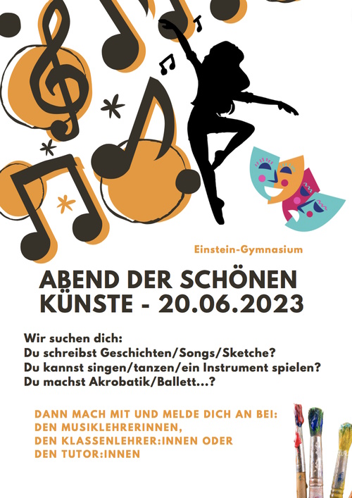 Fühlen Sie sich herzlich eingeladen. Karten gibt es am Montag in der Pause auf dem Schulhof für 3 bzw. 5 Euro. Die Restkarten werden jeweils an der Abendkasse ab 18.30 Uhr angeboten. Einlass ist ab 18.45 Uhr.