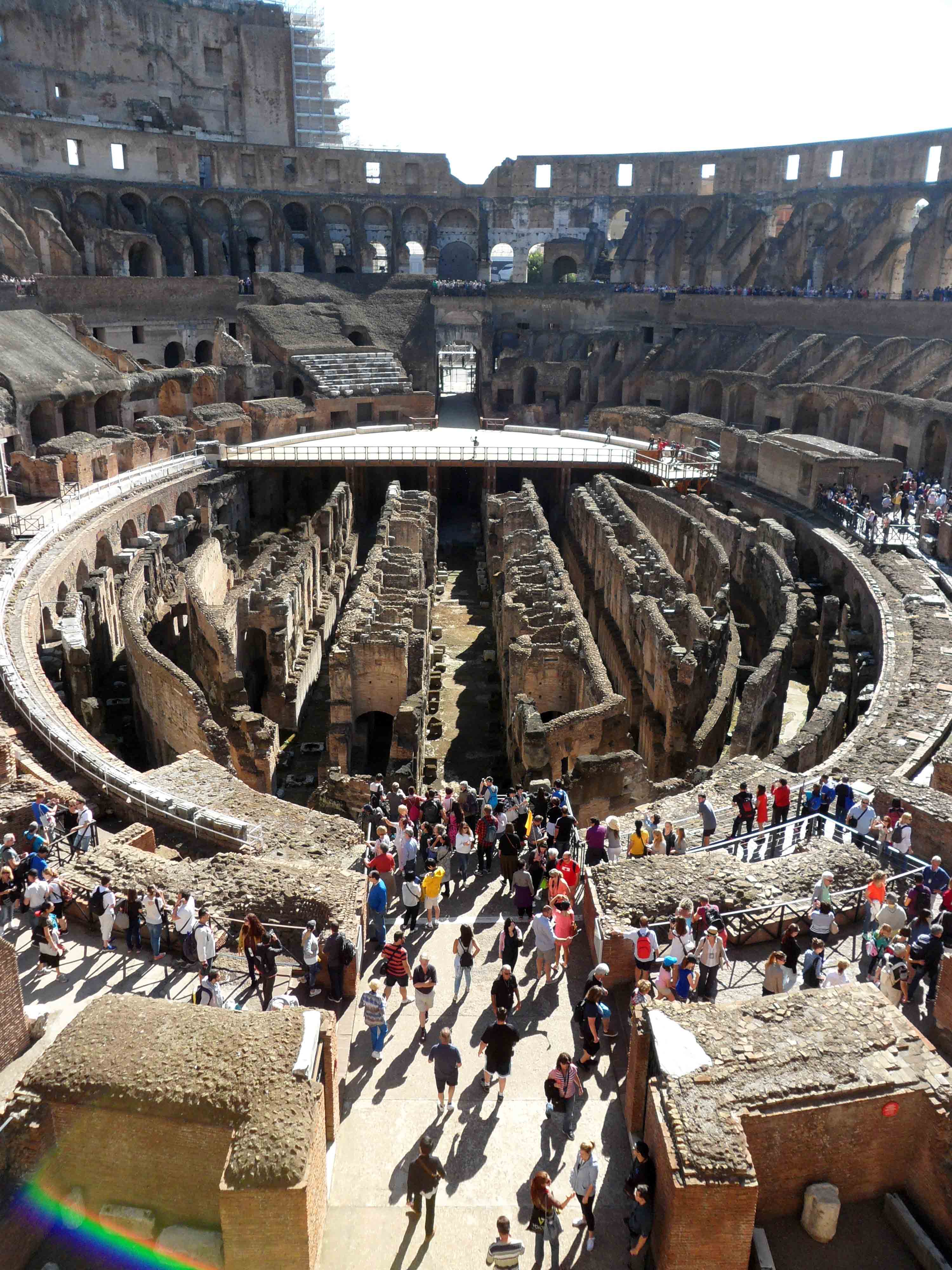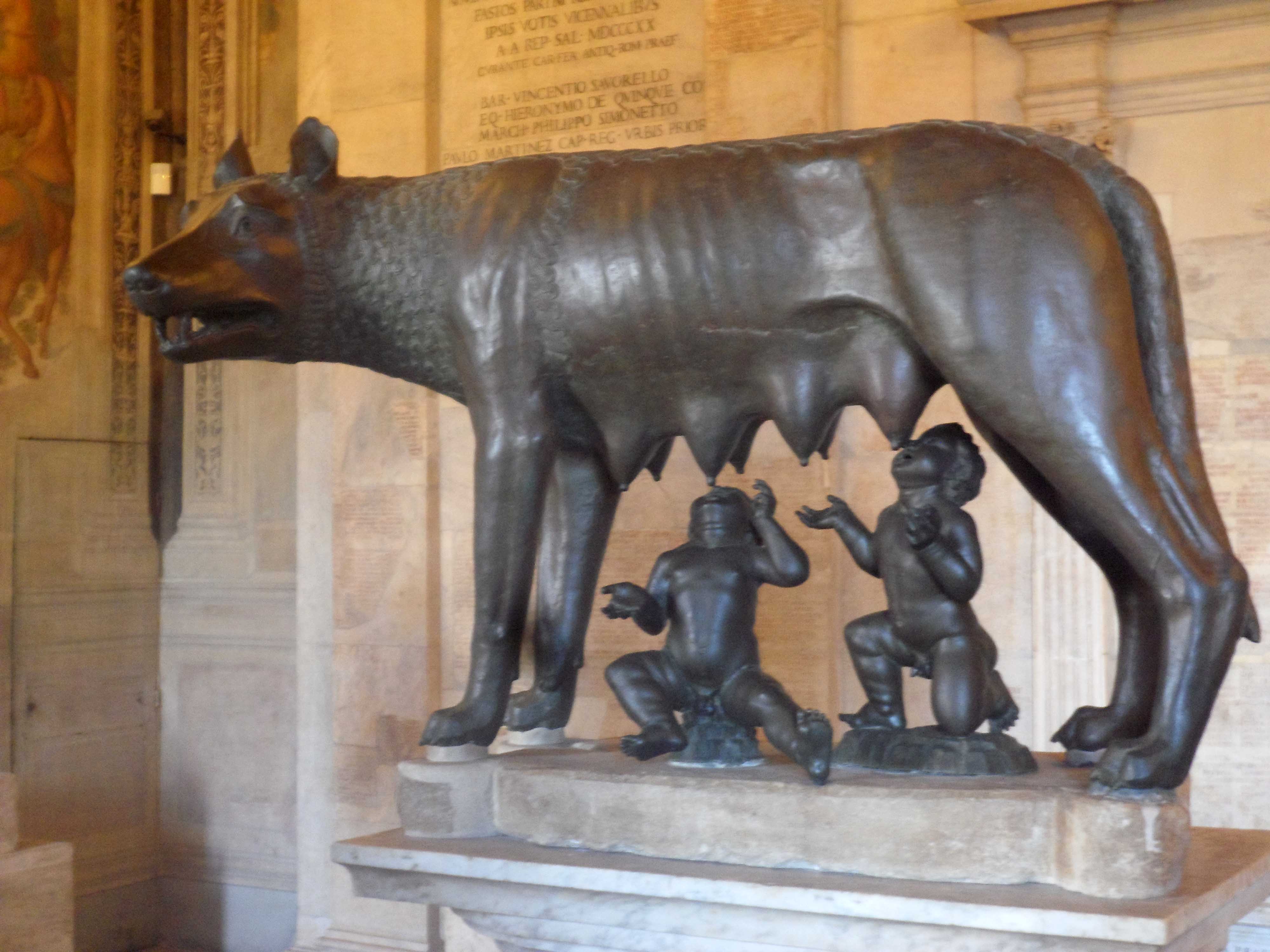 Am Donnerstag, dem für uns Deutschkursler vierten und somit vorletzten Tag, brachen schon früh alle auf in Richtung Colosseum. Treffpunkt war der Konstantinbogen direkt davor, der trotz seiner Größe im Schatten der riesigen Arena klein erscheint. Von Innen erhielt man eine grobe Vorstellung von dem, was die alten Römer dort erlebt haben mussten. Gleich im Anschluss wanderten wir über die Via Sacra in das nächste Abenteuer. Im Forum Romanum hörten wir die vorbereiteten Vorträge unserer Mitschüler und sahen viele interessante Ruinen. Am Ende des Forums war der Kapitolshügel auf dessen Spitze sich das Kapitol, eine Demonstration einer italienischen Gewerkschaft und das Musei Capitolini befand, was auch unsere letzte Station für diesen Donnerstag war. Im Museum konnten wir nicht nur zahllose Büsten und Statuen betrachten, sondern auch den über zwei Meter großen Fuß einer Konstantinstatue und die bekannte Bronzefigur von Romolus und Remus mit der Wölfin.