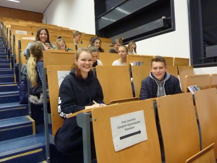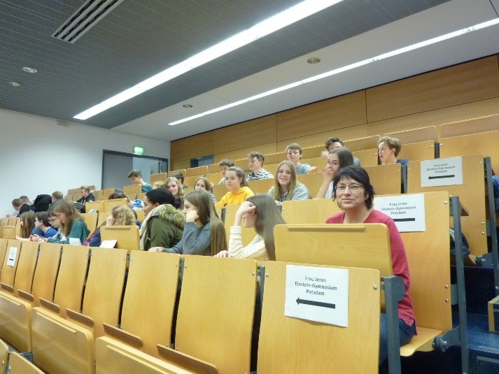 Mit leuchtenden Chemikalien, stinkenden Gasen, bunten Flammen und beeindruckenden Explosionen unterhielt uns, das sind Schülerinnen und Schüler aus der 8b, 9b und aus dem EK-Chemie 11 in Begleitung von Frau Leschke und Frau Jeran, am 07.12.2016 das Team um Professor Dr. Hans Jürgen Holdt der Uni Potsdam im Bereich Chemie.