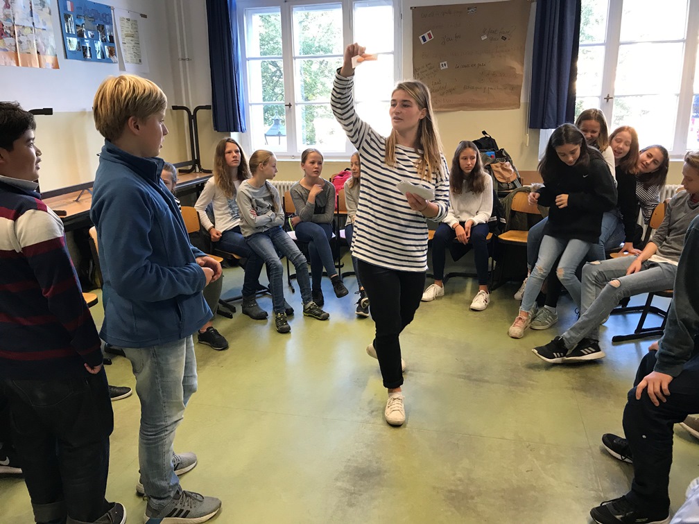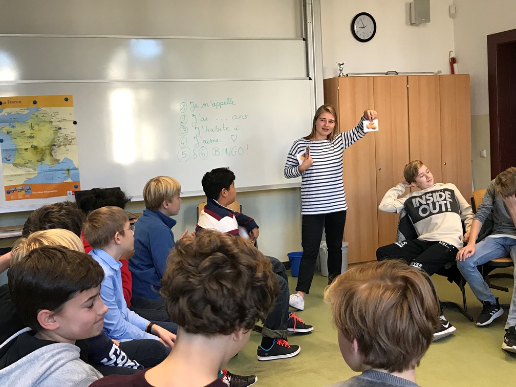 Lisa, die junge Lektorin aus Paris, war mit viel Anschauungsmaterial, Prospekten und Spielen zu Besuch im Einstein-Gymnasium.
