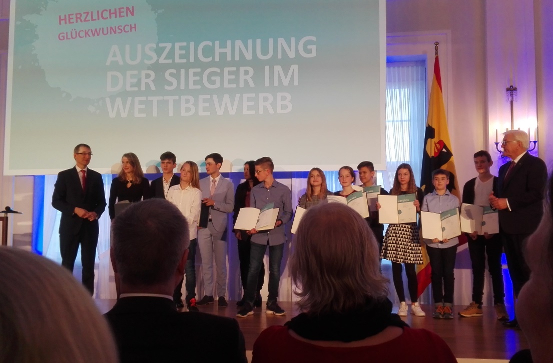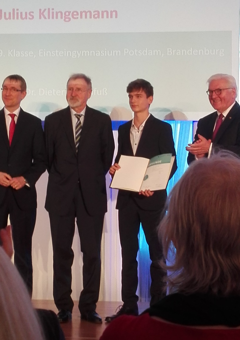 Der jetzige Zehntklässler Julius Klingemann nahm 2019 am Bundeswettbewerb Geschichte der Körber-Stiftung teil und wurde am 19.11.2019 vom Bundespräsidenten Frank-Walter Steinmeier zum 1. Preis beglückwünscht.
