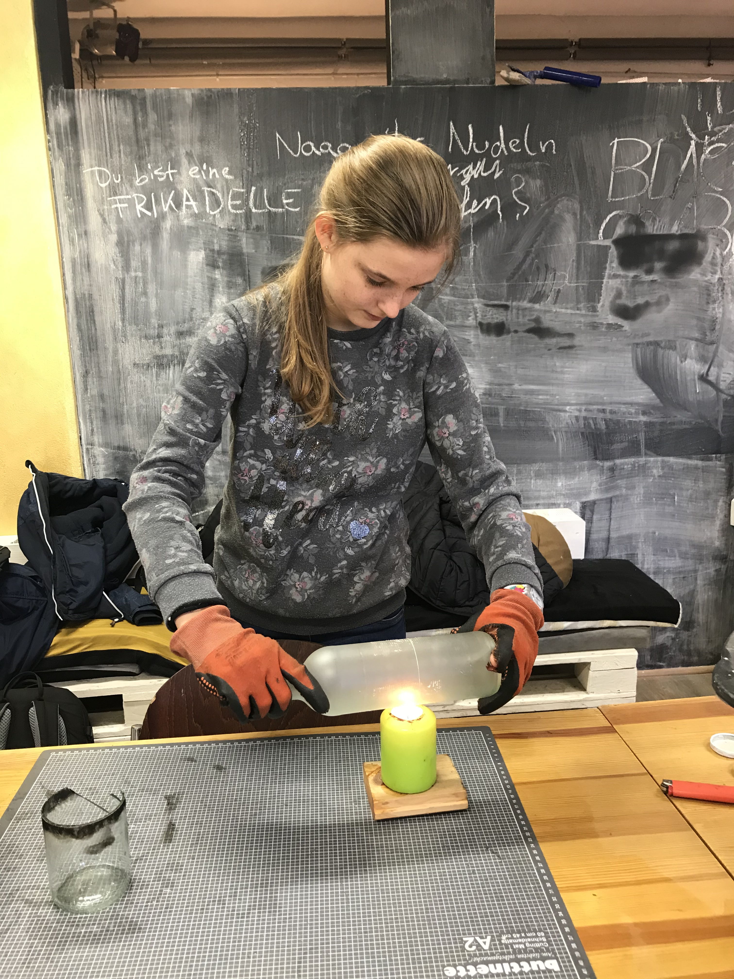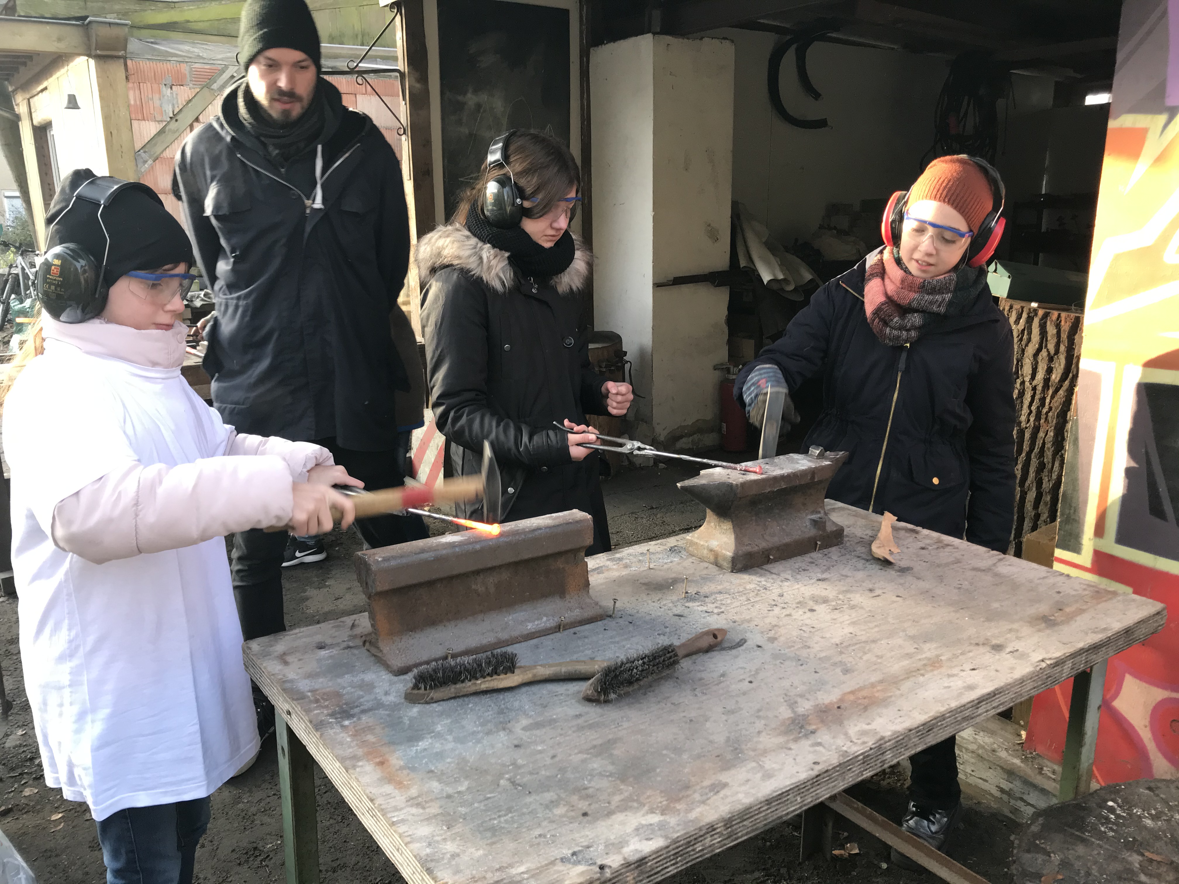 Zu diesem Schwerpunkt wurden in der Projektwerkstatt in Babelsberg Kerzen hergestellt, Yogakissen und Taschen genäht, Handylautsprecher aus Holz gefertigt und in der Schmiede Flaschenöffner und Eisenherzen geschmiedet.