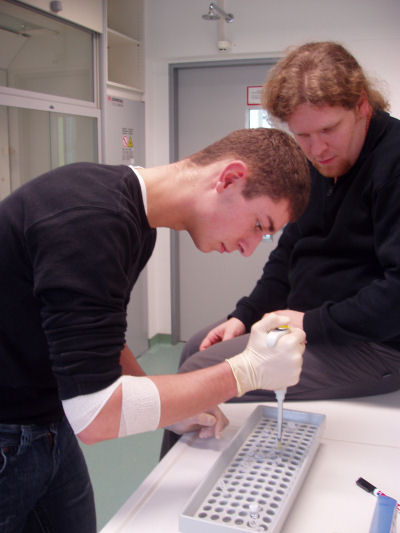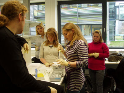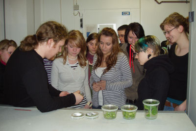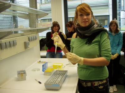 Am 26. und 27. Februar 2008 hatten einige Schüler des GK Bio und des LK Bio der Jahrgangsstufe 12 die Chance, gentechnische Verfahren und deren Ergebnisse mit eigenen Augen zu erleben. Diese Möglichkeit ergab sich durch eine Führung durch das Max-Planck-Institut für molekulare Pflanzenphysiologie im Wissenschaftspark in Golm. Dort konnten wir nicht nur die hoch technisierten Laboratorien besichtigen und Einblick in die Arbeit der Wissenschaftler gewinnen, wir durften sogar selbst wissenschaftlich tätig werden. Wir konnten eine PCR durchführen und eine anschließende Gel-Elektrophorese mit vorbereiten. Es ist selten, dass eine PCR beim ersten Mal gelingt. Sie muss mehrmals durchgeführt werden. Erfreut waren wir über das Ergebnis. Bei jedem von uns hat die PCR nachweislich geklappt. Wir möchten uns auf diesem Weg auch noch einmal bei Herrn Rinder bedanken, der uns einen interessanten Einblick in die Arbeit der Molekularbiologen ermöglichte und uns selbst zum „Wissenschaftler“ werden ließ.