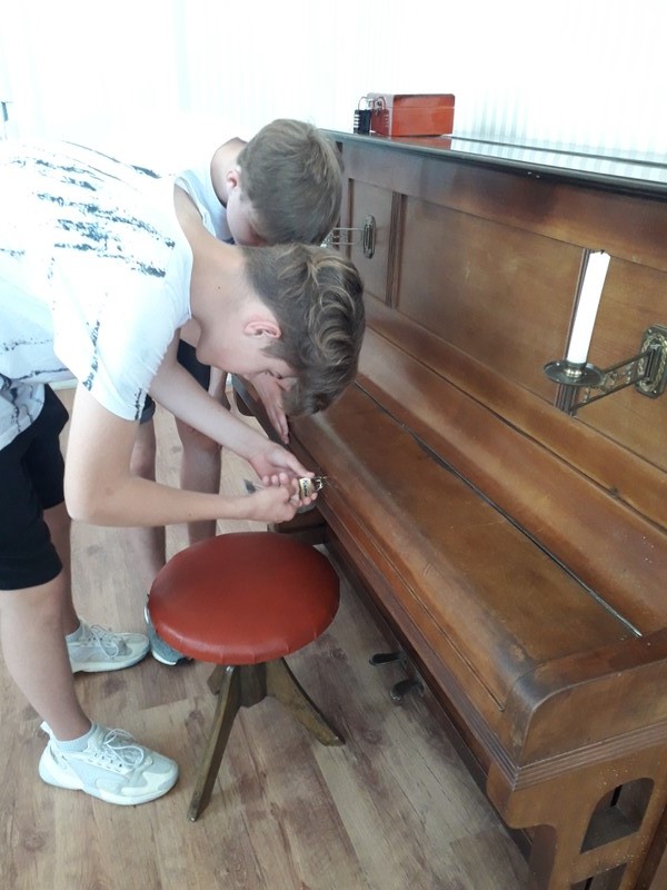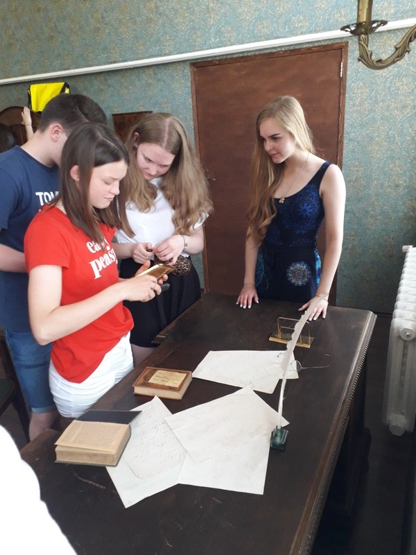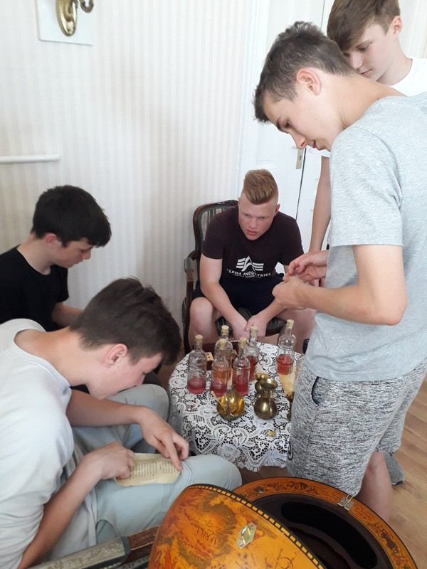 Mit GPS-Geräten ausgestattet, machten sich die Schülerinnen und Schüler bei hochsommerlichen Temperaturen auf Spurensuche durch das Neuruppiner Stadtzentrum und konnten so Stationen Fontanes Lebens vor Ort nachvollziehen. Zum Abschluss des Programms begaben wir uns ins Jahr 1889. In zwei Zimmern, die das Arbeitszimmer und den Salon des Autors imitierten, galt es, Zahlencodes, Rätsel und Schlösser zu knacken, um eine verlorengegangene Zeitung zu finden. Letztere enthielt einen Artikel, der Fontane als Ausgangspunkt für die Ballade „Herr von Ribbeck auf Ribbeck im Havelland“ diente, sodass das Finden umso wichtiger war – was sich für unsere Schülerinnen und Schüler als Leichtigkeit erwies. Nach diesem ereignisreichen Tag traten wir einigermaßen erschöpft, aber klüger geworden, die Heimreise an.