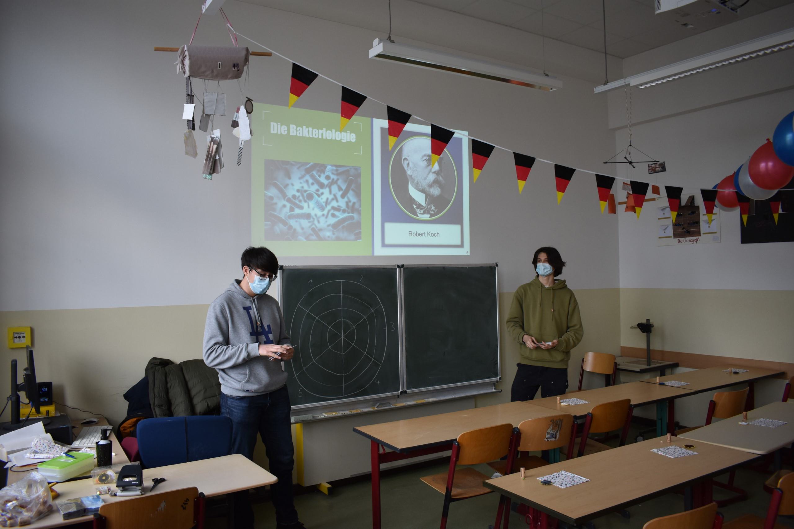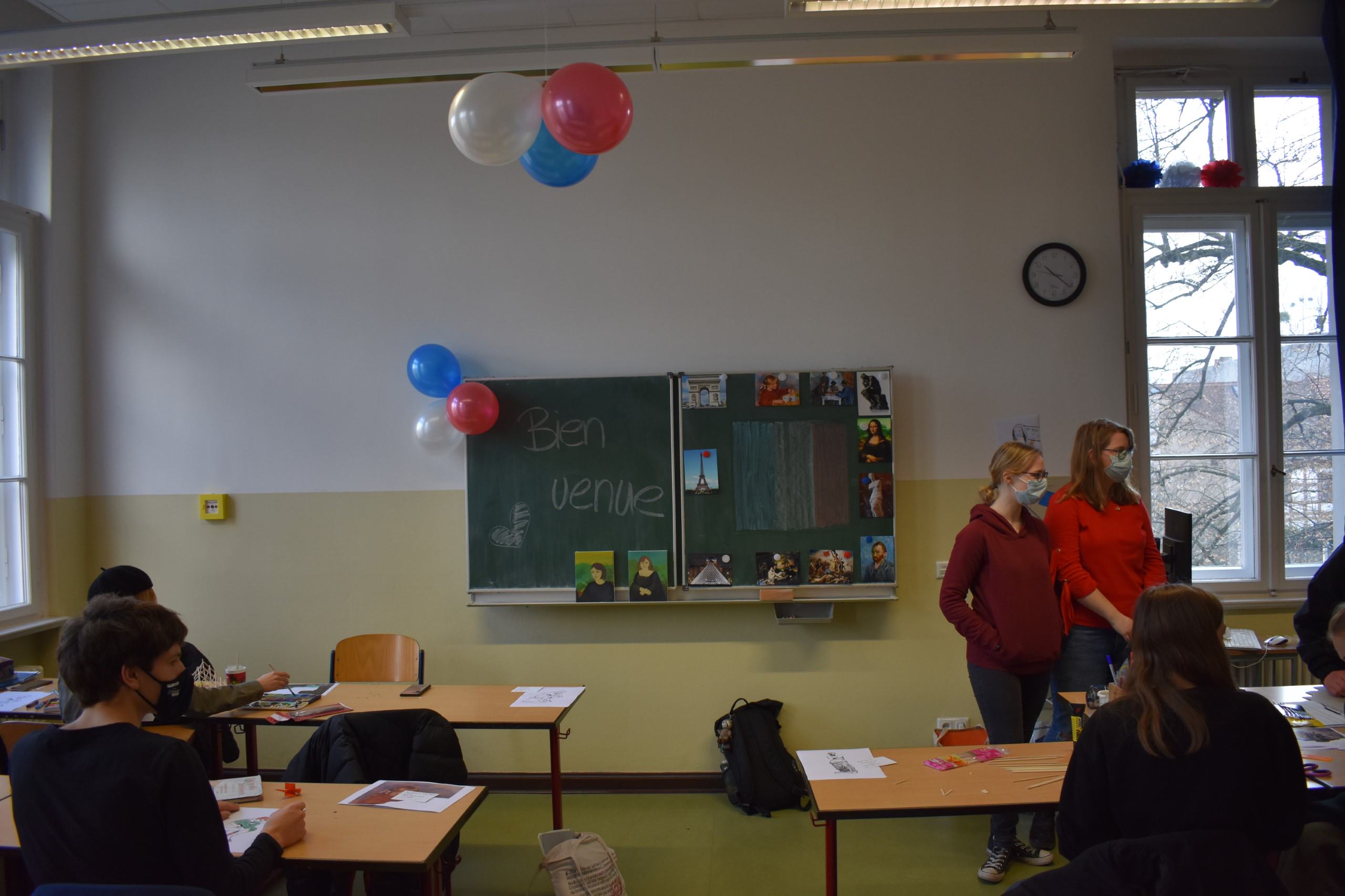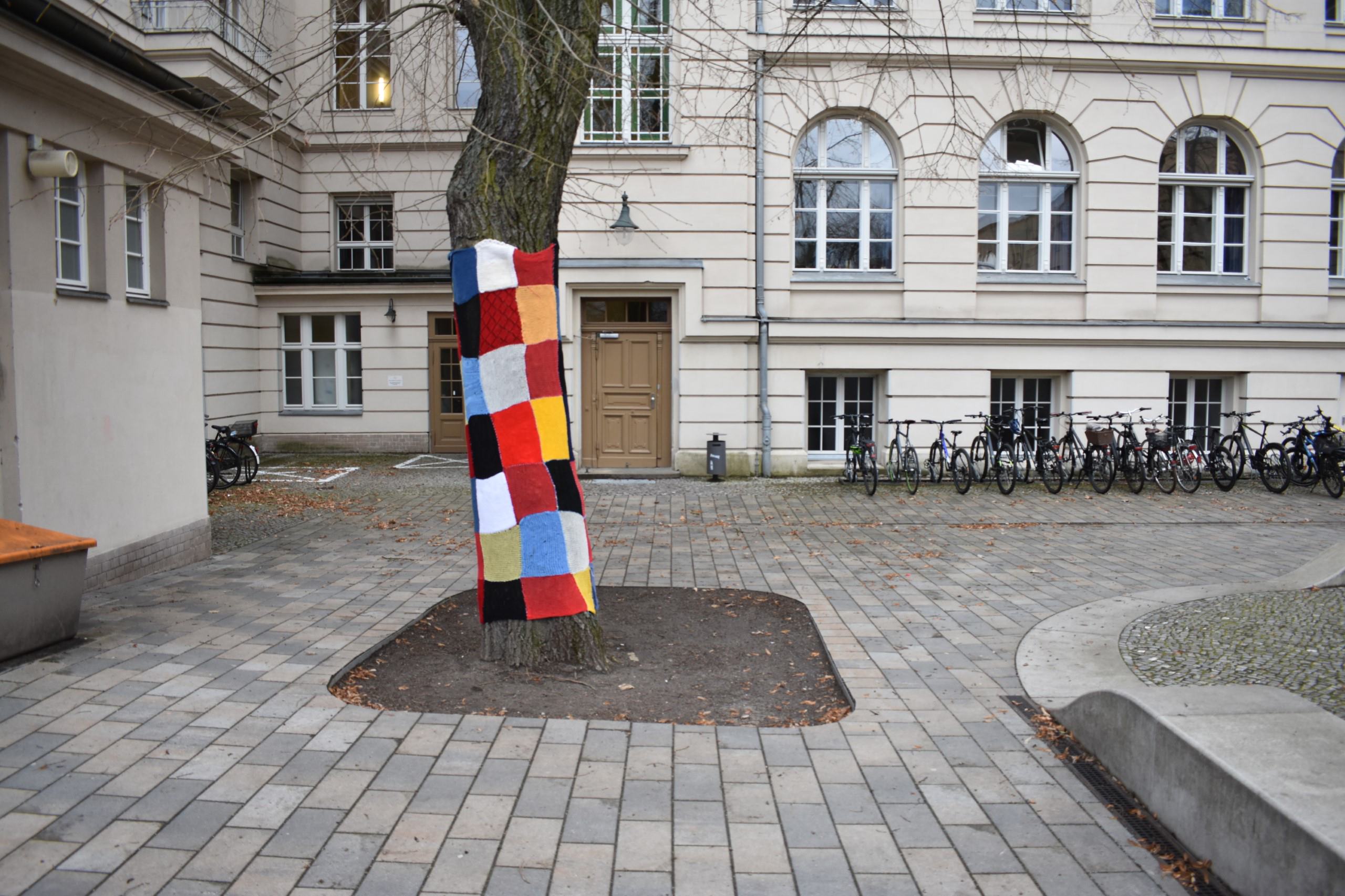 Dies und noch viel mehr konnten die Schüler*innen des 10. Jahrgangs am Freitag beim 1. Deutsch-Französischen Tag am Einstein-Gymnasium erfahren. Ein Seminarkurs des 12. Jahrgangs hatte den Tag mit viel Engagement und Ideenreichtum vorbereitet, um mit vielfältigen Workshops Einblicke in französische Lebensart, Land, Leute und Sprache zu geben. Leider konnten die anderen Jahrgänge nicht teilnehmen und auch auf den Crêpes-Stand und das Fußball-Freundschaftsspiel beider Nationen musste verzichtet werden. Nachhaltig in Erinnerung wird der Tag durch den umstrickten Baum auf dem Schulhof bleiben, den seit heute ein "Mantel" in den Flaggenfarben beider Länder schmückt.