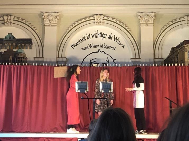 Wir bedanken uns bei allen Zuschauern und Schauspielern und natürlich bei Frau Mahling für die tolle Leitung der beiden DS-Kurse. Wir hatten viel Spaß und freuen uns schon aufs nächste Jahr, wenn es wieder heißt: Vorhang auf fürs Einstein-Gymnasium!