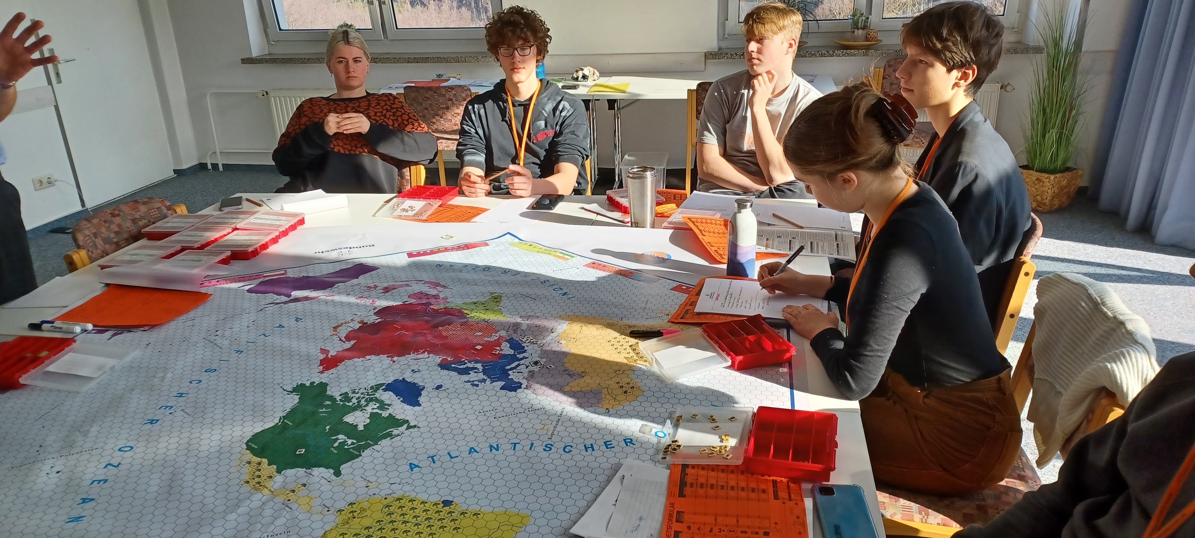 Im Rahmen unserer POL&IS-Fahrt hatten wir die Möglichkeit, internationale politische Entscheidungen zu treffen, ohne dass diese die reale Welt beeinflussen. POL&IS steht für Politik und internationale Sicherheit. Vom 13. bis zum 15. Februar 2023 tauchten wir in das Jahr 2014 ein und bekamen neue Rollen. Nun waren wir Regierungschefs, Staatsminister, Wirtschaftsminister aus Nordamerika, Europa, Russland, Japan, China, Arabien und Afrika. Zudem gab es auch UN-Gesandte, die Weltbank, die Weltpresse und NGOs.