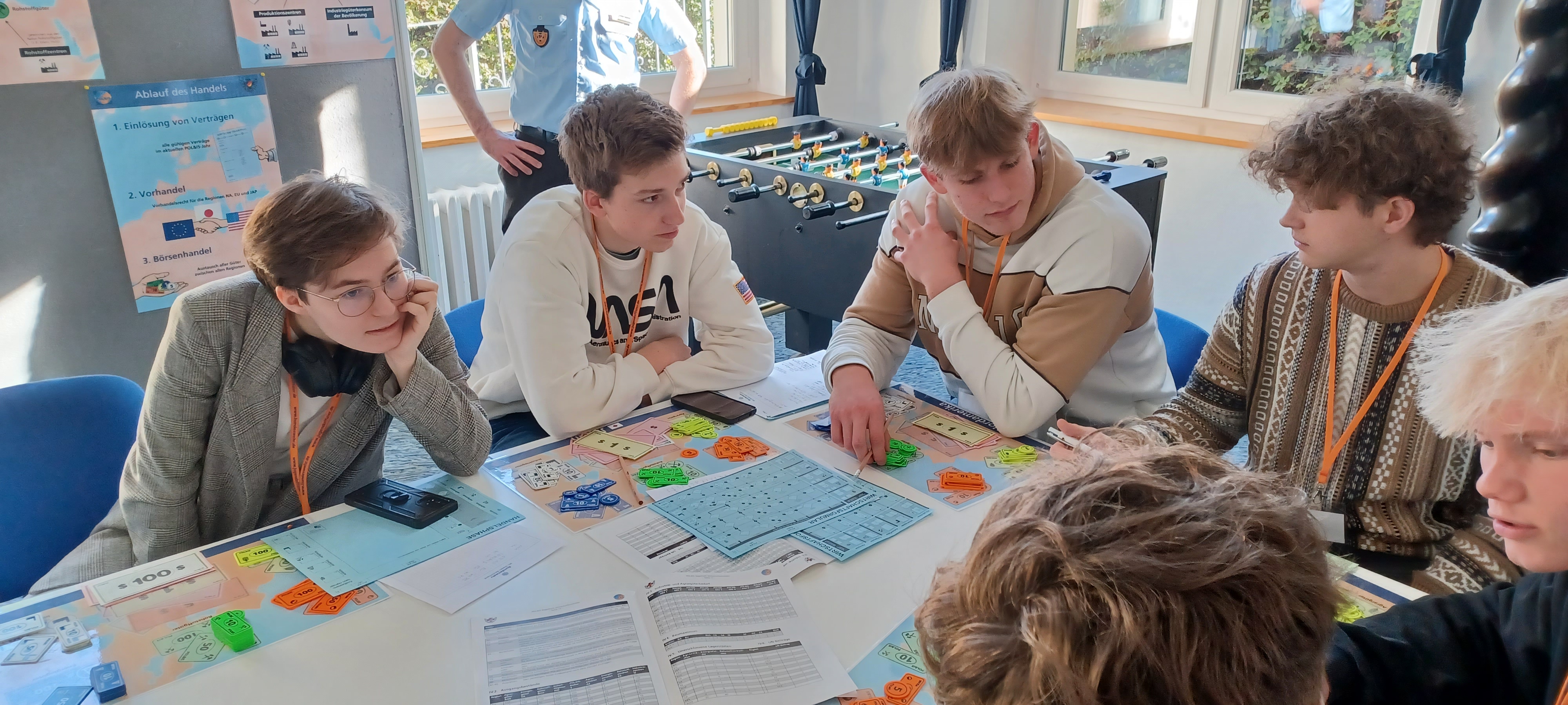 Im Planspiel kamen viele Herausforderungen auf uns zu und diese hatten uns auch in den Pausen beschäftigt. Wir mussten mit lokalen Problemen umgehen, wie Hungersnöten in China oder Flüchtlingswellen die auf Europa treffen. Diese Flüchtlingswelle wurde dann auch zu einem globalen Problem.