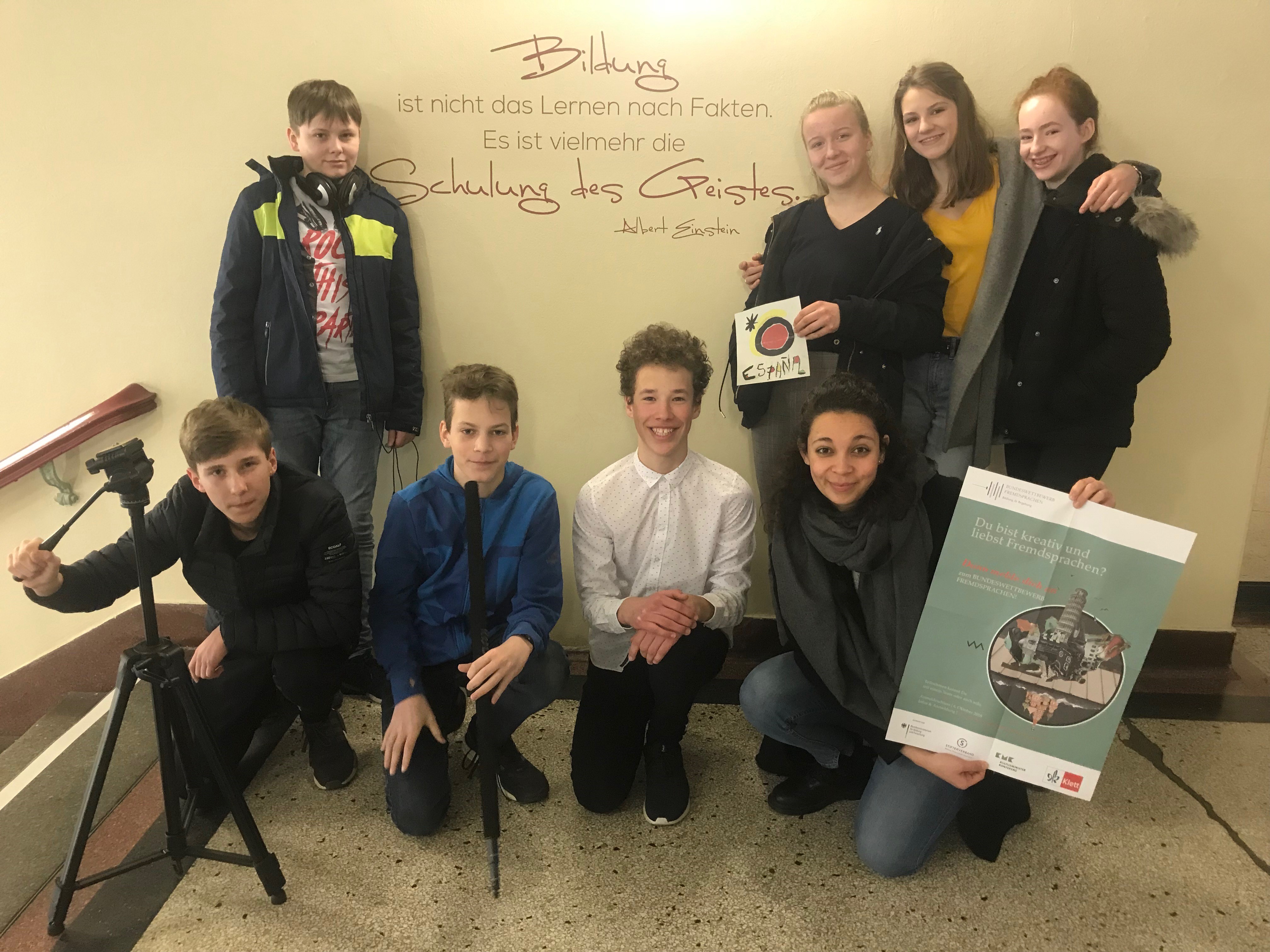 Außerdem unterstützen alle Schüler*innen dabei, die mit Spanisch am „Bundeswettbewerb Fremdsprachen“ alleine oder in der Gruppe teilnehmen möchtet. Der Wettbewerb ist zwar hart, aber es kann auch viel Spaß machen, mit Spanisch „zu spielen“.