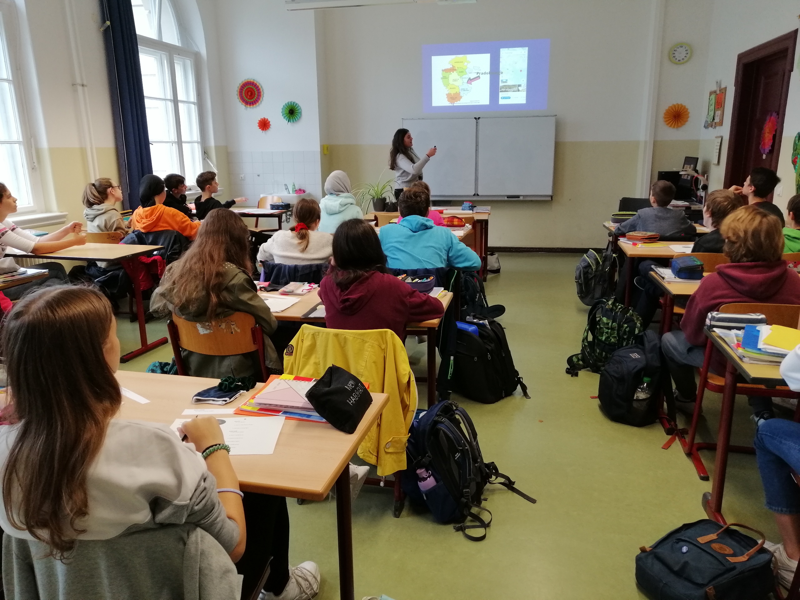 Nach diesem Prinzip integrieren wir auch unsere diesjährige Fremdsprachenassistentin in den Unterricht: Ob durch Klassenteilung, Konversation in Kleingruppen oder thematischen Vortrag mit Diskussion – es gibt viele Möglichkeiten je nach Klassenstufe und Thematik die Unterrichtssprache Spanisch in eine nicht nur gelernte, sondern auch gelebte Sprache zu wandeln.