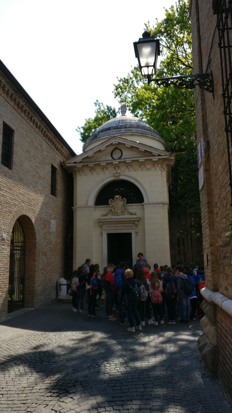 Am heutigen Tag ging es nach Ravenna, dort war unser erstes Ziel das Mausoleo di Teodorico. Das Mausoleo wurde im Jahr 520 n. Chr. auf Anweisung von Teodorico als sein eigenes Grabmal errichtet. Das Grabmal hat zwei Etagen, die beide nicht großartig verziert sind. Zum Beispiel gab es in der ersten Etage als Dekoration lediglich vier Flachreliefs, von denen zwei Muscheln darstellen.