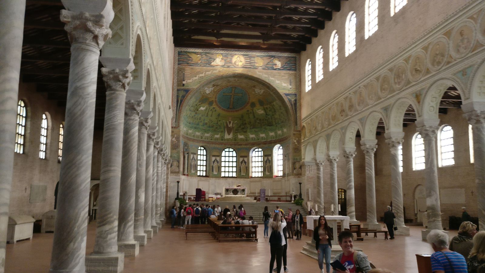 Unsere zweite Station war die Basilica di S. Apollinare Nuovo. Dieses Gebäude hat Teodorico im 6. Jahrhundert neben seinem Palast erbauen lassen. Ursprünglich war dieses Gebäude eine Pfalzkirche, deren Bauzeit 15 Jahre betrug. Dies ist sehr erstaunlich, da die Kirche mit vielen filigranen Mosaike verziert ist.